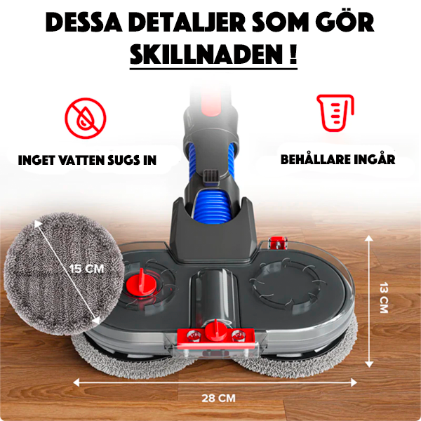 Med våra roterande huvuden tar du snabbt och enkelt bort envisa fläckar från ditt golv. Smutsen sugs upp och fläckarna torkas bort utan ansträngning.