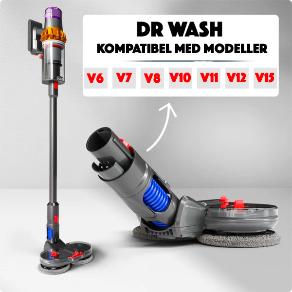 Tech&Wash-tillbehöret har utformats speciellt för Dyson-dammsugare för att spara värdefull tid vid rengöring. De kraftfulla rörelserna från de två roterande mopphuvudena tar bort även de tuffaste fläckarna, samtidigt som din Dyson behåller sin vanliga sugkraft.